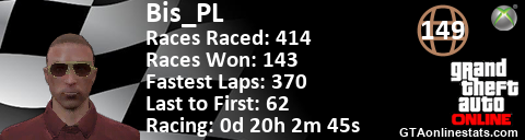 [URL=http://GTAonlinestats.com/showplayer/Bis_PL][IMG]http://GTAonlinestats.com/racesignature/Bis_PL/sig.png[/IMG][/URL]