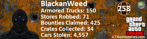[URL=http://GTAonlinestats.com/showplayer/BlackanWeed][IMG]http://GTAonlinestats.com/randomsignature/BlackanWeed/sig.png[/IMG][/URL]