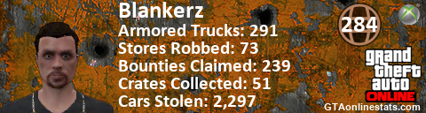 [URL=http://GTAonlinestats.com/showplayer/Blankerz][IMG]http://GTAonlinestats.com/signature/Blankerz/sig.png[/IMG][/URL]