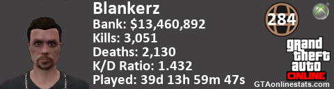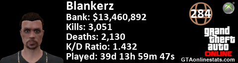 <a href="http://GTAonlinestats.com/showplayer/Blankerz"><img src="http://GTAonlinestats.com/signature/Blankerz/sig.png" alt="Blankerz" border="0" /></a>