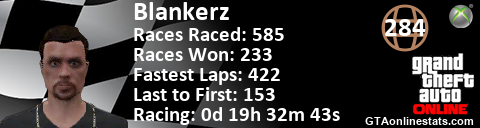 [URL=http://GTAonlinestats.com/showplayer/Blankerz][IMG]http://GTAonlinestats.com/racesignature/Blankerz/sig.png[/IMG][/URL]