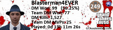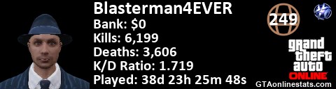 <a href="http://GTAonlinestats.com/showplayer/Blasterman4EVER"><img src="http://GTAonlinestats.com/dmsignature/Blasterman4EVER/sig.png" alt="Blasterman4EVER" border="0" /></a>