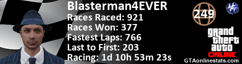 <a href="http://GTAonlinestats.com/showplayer/Blasterman4EVER"><img src="http://GTAonlinestats.com/racesignature/Blasterman4EVER/sig.png" alt="Blasterman4EVER" border="0" /></a>