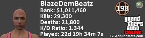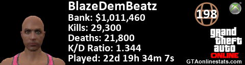[URL=http://GTAonlinestats.com/showplayer/BlazeDemBeatz/2][IMG]http://GTAonlinestats.com/signature/BlazeDemBeatz/2/sig.png[/IMG][/URL]