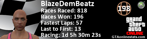 [URL=http://GTAonlinestats.com/showplayer/BlazeDemBeatz/2][IMG]http://GTAonlinestats.com/racesignature/BlazeDemBeatz/2/sig.png[/IMG][/URL]