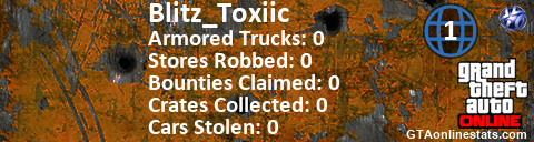 [URL=http://GTAonlinestats.com/showplayer/Blitz_Toxiic][IMG]http://GTAonlinestats.com/crimesignature/Blitz_Toxiic/sig.png[/IMG][/URL]