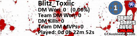 [URL=http://GTAonlinestats.com/showplayer/Blitz_Toxiic][IMG]http://GTAonlinestats.com/dmsignature/Blitz_Toxiic/sig.png[/IMG][/URL]