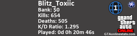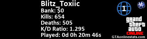 <a href="http://GTAonlinestats.com/showplayer/Blitz_Toxiic"><img src="http://GTAonlinestats.com/dmsignature/Blitz_Toxiic/sig.png" alt="Blitz_Toxiic" border="0" /></a>