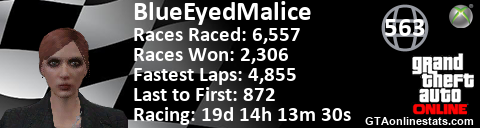 [URL=http://GTAonlinestats.com/showplayer/BlueEyedMalice][IMG]http://GTAonlinestats.com/racesignature/BlueEyedMalice/sig.png[/IMG][/URL]