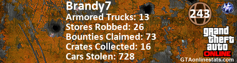 [URL=http://GTAonlinestats.com/showplayer/Brandy7][IMG]http://GTAonlinestats.com/randomsignature/Brandy7/sig.png[/IMG][/URL]