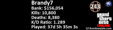<a href="http://GTAonlinestats.com/showplayer/Brandy7"><img src="http://GTAonlinestats.com/dmsignature/Brandy7/sig.png" alt="Brandy7" border="0" /></a>