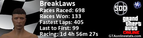 <a href="http://GTAonlinestats.com/showplayer/BreakLaws"><img src="http://GTAonlinestats.com/racesignature/BreakLaws/sig.png" alt="BreakLaws" border="0" /></a>