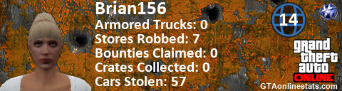 [URL=http://GTAonlinestats.com/showplayer/Brian156/2][IMG]http://GTAonlinestats.com/crimesignature/Brian156/2/sig.png[/IMG][/URL]