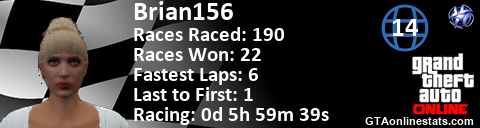 [URL=http://GTAonlinestats.com/showplayer/Brian156/2][IMG]http://GTAonlinestats.com/racesignature/Brian156/2/sig.png[/IMG][/URL]