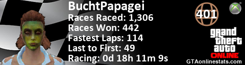 [URL=http://GTAonlinestats.com/showplayer/BuchtPapagei][IMG]http://GTAonlinestats.com/racesignature/BuchtPapagei/sig.png[/IMG][/URL]