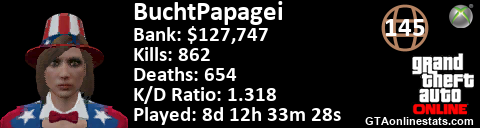 [URL=http://GTAonlinestats.com/showplayer/BuchtPapagei/2][IMG]http://GTAonlinestats.com/signature/BuchtPapagei/2/sig.png[/IMG][/URL]