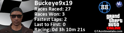<a href="http://GTAonlinestats.com/showplayer/Buckeye9x19"><img src="http://GTAonlinestats.com/racesignature/Buckeye9x19/sig.png" alt="Buckeye9x19" border="0" /></a>
