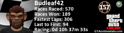 <a href="http://GTAonlinestats.com/showplayer/Budleaf42"><img src="http://GTAonlinestats.com/racesignature/Budleaf42/sig.png" alt="Budleaf42" border="0" /></a>