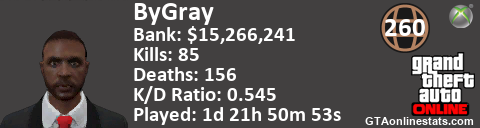 [URL=http://GTAonlinestats.com/showplayer/ByGray/3][IMG]http://GTAonlinestats.com/greysignature/ByGray/3/sig.png[/IMG][/URL]