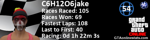 <a href="http://GTAonlinestats.com/showplayer/C6H12O6jake"><img src="http://GTAonlinestats.com/racesignature/C6H12O6jake/sig.png" alt="C6H12O6jake" border="0" /></a>