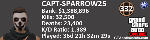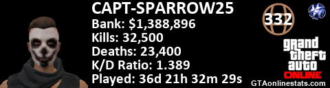 [URL=http://GTAonlinestats.com/showplayer/CAPT-SPARROW25][IMG]http://GTAonlinestats.com/signature/CAPT-SPARROW25/sig.png[/IMG][/URL]