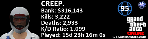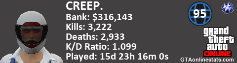 <a href="http://GTAonlinestats.com/showplayer/CREEP."><img src="http://GTAonlinestats.com/signature/CREEP./sig.png" alt="CREEP." border="0" /></a>