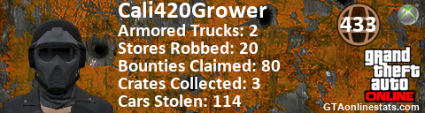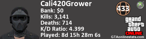 <a href="http://GTAonlinestats.com/showplayer/Cali420Grower"><img src="http://GTAonlinestats.com/greysignature/Cali420Grower/sig.png" alt="Cali420Grower" border="0" /></a>