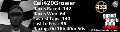 <a href="http://GTAonlinestats.com/showplayer/Cali420Grower"><img src="http://GTAonlinestats.com/racesignature/Cali420Grower/sig.png" alt="Cali420Grower" border="0" /></a>