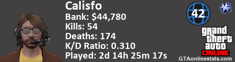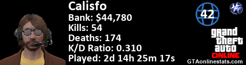 [URL=http://GTAonlinestats.com/showplayer/Calisfo/2][IMG]http://GTAonlinestats.com/greysignature/Calisfo/2/sig.png[/IMG][/URL]
