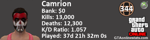 [URL=http://GTAonlinestats.com/showplayer/Camrion][IMG]http://GTAonlinestats.com/signature/Camrion/sig.png[/IMG][/URL]