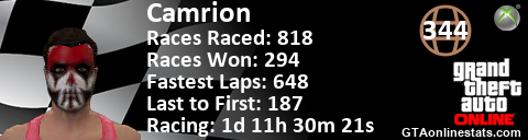 [URL=http://GTAonlinestats.com/showplayer/Camrion][IMG]http://GTAonlinestats.com/racesignature/Camrion/sig.png[/IMG][/URL]