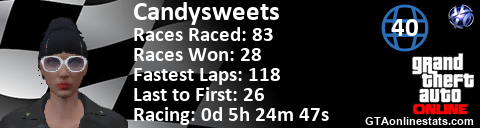 [URL=http://GTAonlinestats.com/showplayer/Candysweets][IMG]http://GTAonlinestats.com/racesignature/Candysweets/sig.png[/IMG][/URL]