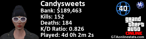 <a href="http://GTAonlinestats.com/showplayer/Candysweets"><img src="http://GTAonlinestats.com/greysignature/Candysweets/sig.png" alt="Candysweets" border="0" /></a>