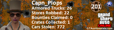 [URL=http://GTAonlinestats.com/showplayer/Capn_Plops/2][IMG]http://GTAonlinestats.com/crimesignature/Capn_Plops/2/sig.png[/IMG][/URL]