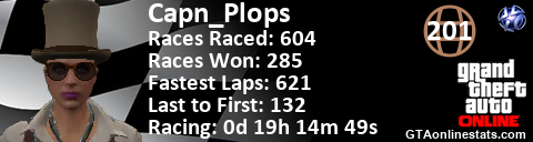 [URL=http://GTAonlinestats.com/showplayer/Capn_Plops/2][IMG]http://GTAonlinestats.com/racesignature/Capn_Plops/2/sig.png[/IMG][/URL]
