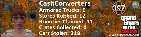 [URL=http://GTAonlinestats.com/showplayer/CashConverters][IMG]http://GTAonlinestats.com/crimesignature/CashConverters/sig.png[/IMG][/URL]