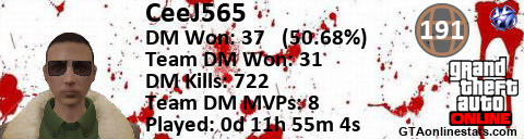 [URL=http://GTAonlinestats.com/showplayer/CeeJ565][IMG]http://GTAonlinestats.com/dmsignature/CeeJ565/sig.png[/IMG][/URL]