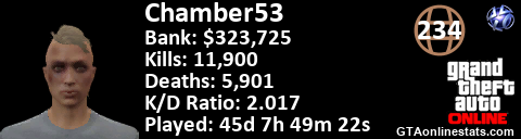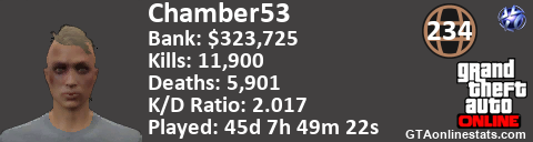 <a href="http://GTAonlinestats.com/showplayer/Chamber53"><img src="http://GTAonlinestats.com/dmsignature/Chamber53/sig.png" alt="Chamber53" border="0" /></a>