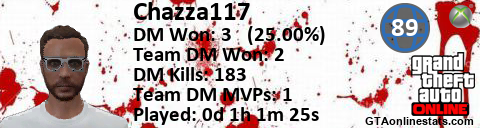 [URL=http://GTAonlinestats.com/showplayer/Chazza117][IMG]http://GTAonlinestats.com/dmsignature/Chazza117/sig.png[/IMG][/URL]