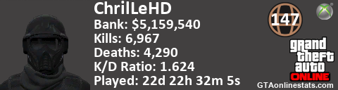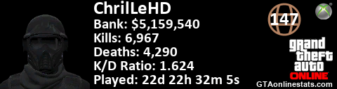 <a href="http://GTAonlinestats.com/showplayer/ChrilLeHD"><img src="http://GTAonlinestats.com/dmsignature/ChrilLeHD/sig.png" alt="ChrilLeHD" border="0" /></a>