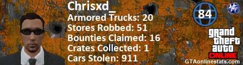 <a href="http://GTAonlinestats.com/showplayer/Chrisxd_"><img src="http://GTAonlinestats.com/signature/Chrisxd_/sig.png" alt="ChrisXD_" border="0" /></a>