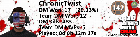 [URL=http://GTAonlinestats.com/showplayer/ChronicTwist/2][IMG]http://GTAonlinestats.com/dmsignature/ChronicTwist/2/sig.png[/IMG][/URL]