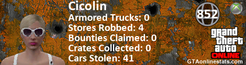 [URL=http://GTAonlinestats.com/showplayer/Cicolin/2][IMG]http://GTAonlinestats.com/crimesignature/Cicolin/2/sig.png[/IMG][/URL]