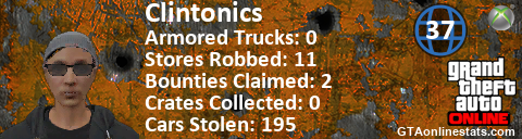 [URL=http://GTAonlinestats.com/showplayer/Clintonics][IMG]http://GTAonlinestats.com/randomsignature/Clintonics/sig.png[/IMG][/URL]