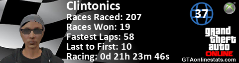 [URL=http://GTAonlinestats.com/showplayer/Clintonics][IMG]http://GTAonlinestats.com/racesignature/Clintonics/sig.png[/IMG][/URL]