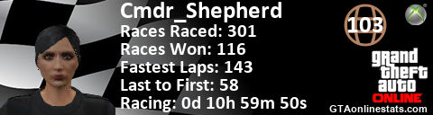 [URL=http://GTAonlinestats.com/showplayer/Cmdr_Shepherd/2][IMG]http://GTAonlinestats.com/racesignature/Cmdr_Shepherd/2/sig.png[/IMG][/URL]
