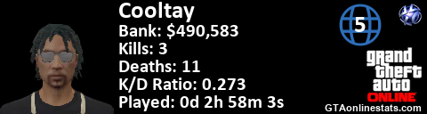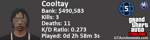 <a href="http://GTAonlinestats.com/showplayer/Cooltay"><img src="http://GTAonlinestats.com/signature/Cooltay/sig.png" alt="Cooltay" border="0" /></a>