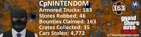 <a href="http://GTAonlinestats.com/showplayer/CpNlNTEND0M"><img src="http://GTAonlinestats.com/crimesignature/CpNlNTEND0M/sig.png" alt="CpNlNTEND0M" border="0" /></a>