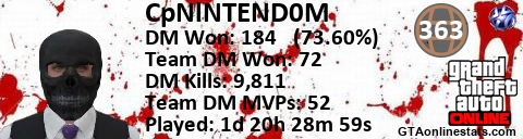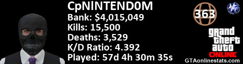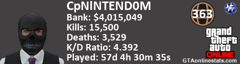 <a href="http://GTAonlinestats.com/showplayer/CpNlNTEND0M"><img src="http://GTAonlinestats.com/dmsignature/CpNlNTEND0M/sig.png" alt="CpNlNTEND0M" border="0" /></a>