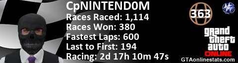 <a href="http://GTAonlinestats.com/showplayer/CpNlNTEND0M"><img src="http://GTAonlinestats.com/racesignature/CpNlNTEND0M/sig.png" alt="CpNlNTEND0M" border="0" /></a>